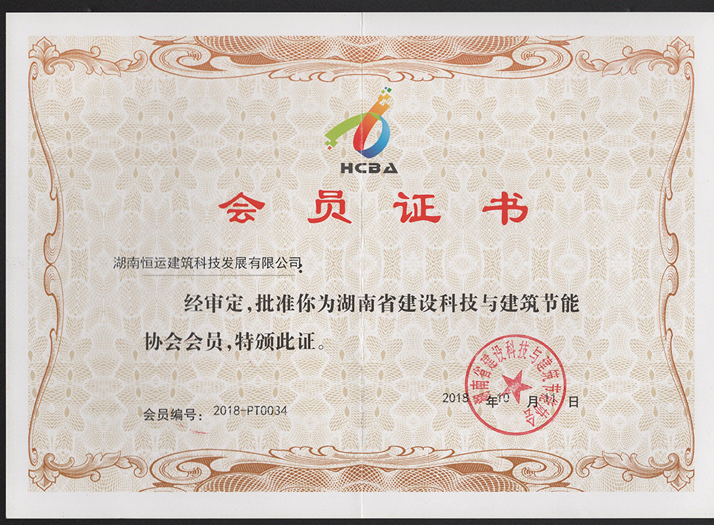 湖南建设科技与建筑节能协会会员证