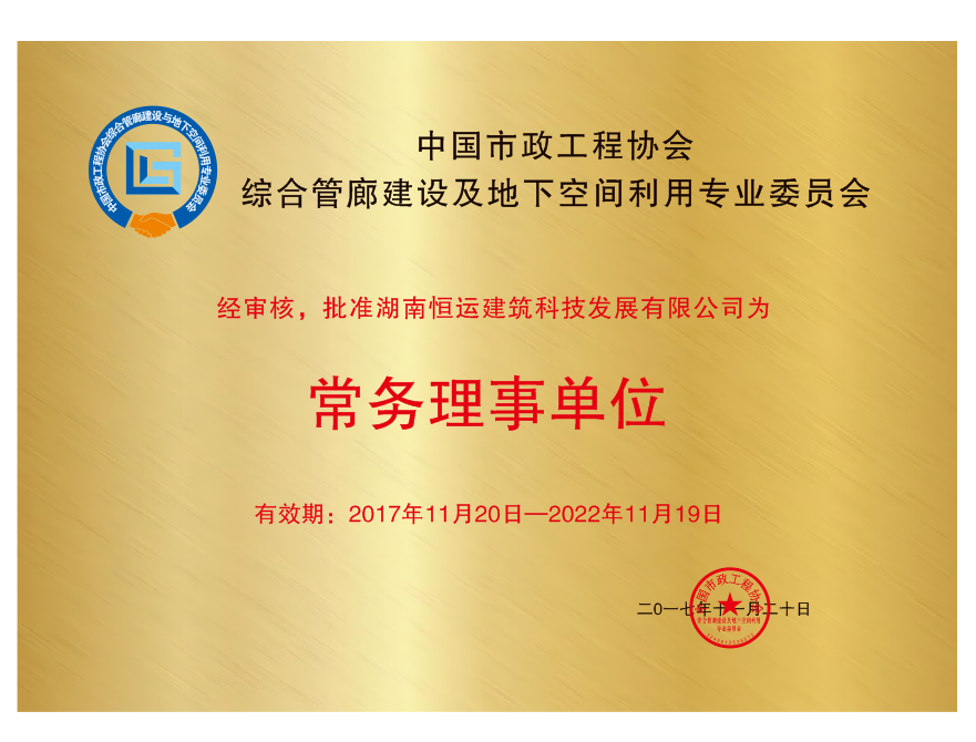 中国市政工程协会综合管廊建设及地下空间利用专业委员会常务理事单位